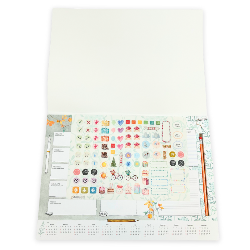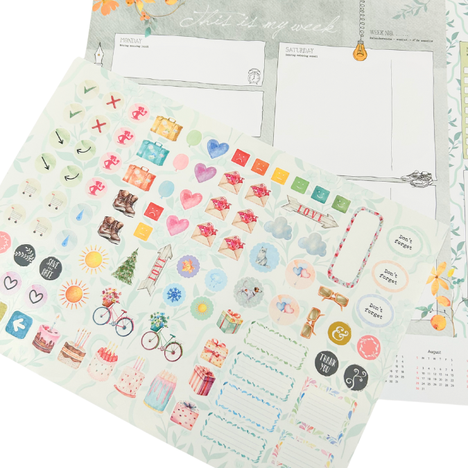 Extra fun: you get a cheerful sticker sheet and a pencil – perfect for adding a personal touch to your planner!