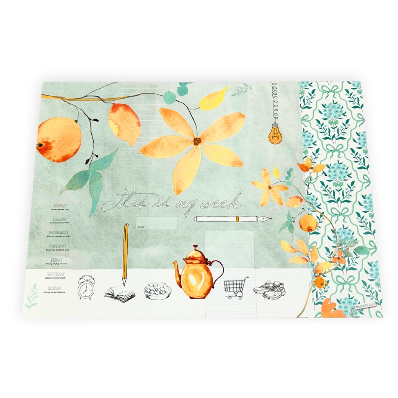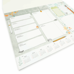 This planner helps you organize your days with pleasure. With its large format (42 x 30 cm) and 52 beautifully designed pages—one for each week of the year—you have plenty of space to keep track of your schedule from Monday to Sunday. There is even extra writing space for the weekend, the best days of the week!