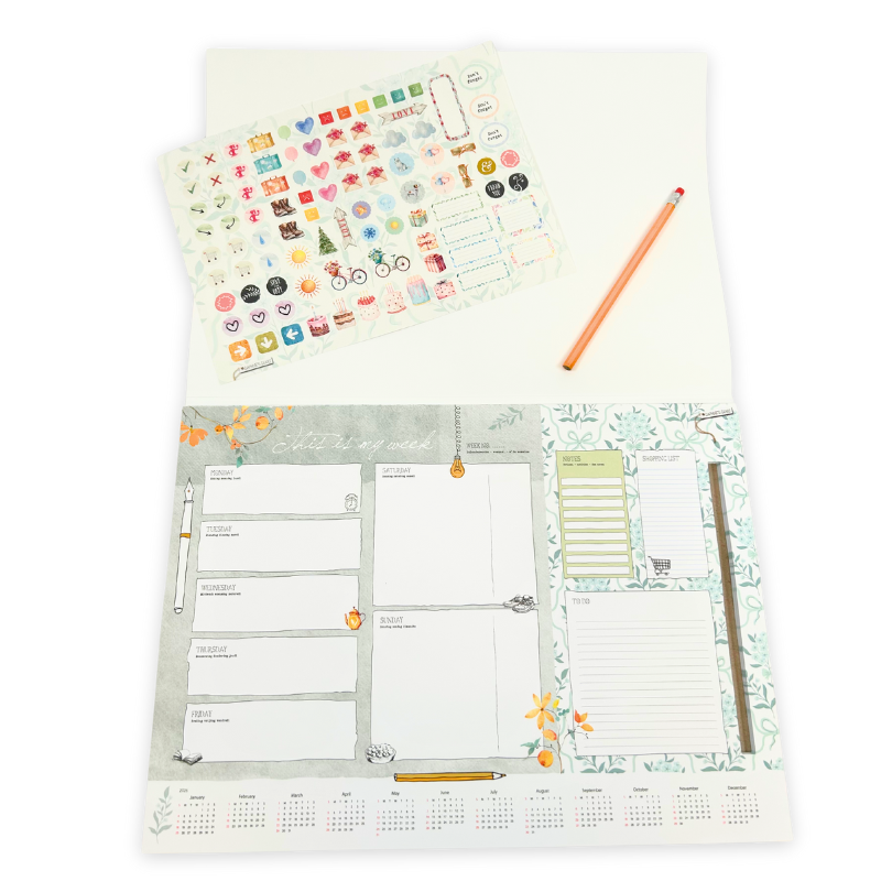 Extra fun: you get a cheerful sticker sheet and a pencil – perfect for adding a personal touch to your planner!